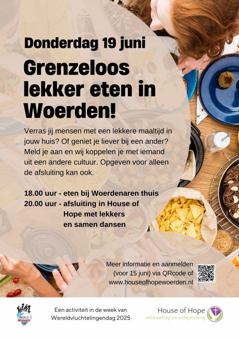 Samen eten is een hele mooie manier om elkaar te leren kennen. Daarom eten donderdag 19 juni Woerdenaren met en zonder vluchtverleden bij elkaar. Na