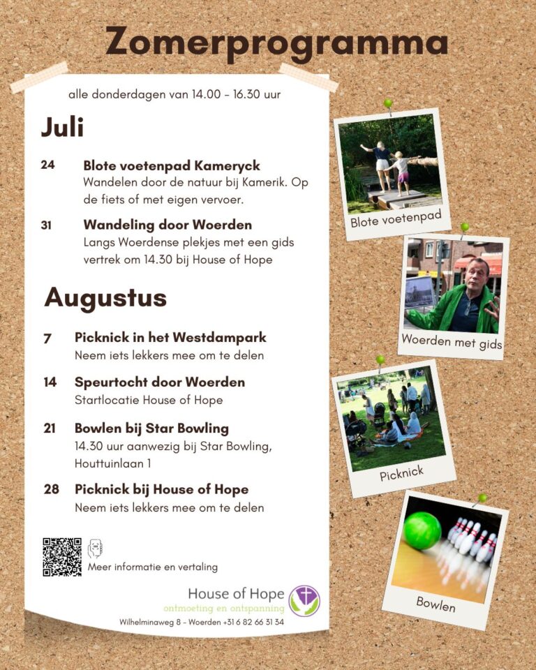 In de zomervakantie zijn we iedere donderdagmiddag open! Dinsdagmorgen zijn we gesloten. We hopen je te zien en natuurlijk mag je mensen die bij jou